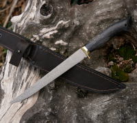 Филейный нож из Булатной стали, рукоять - стабилизированная карельская береза, кожаный чехол идет в комплекте
